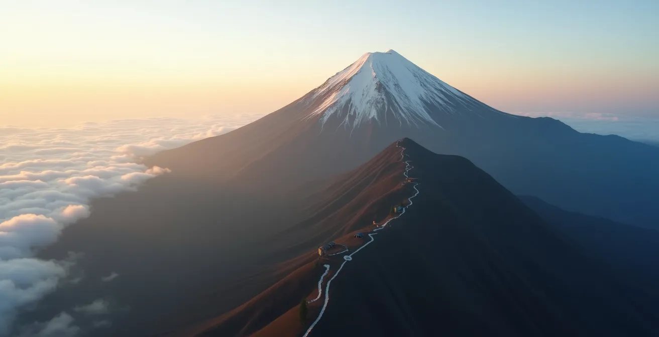 Choosing the “safest” trail for Mt. Fuji is a dangerous misconception; success hinges on mastering the mountain’s non-negotiable rules, not the path you take.